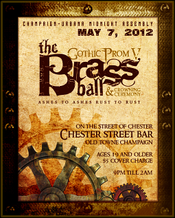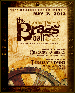 Downstate Illinois' annual goth prom takes on a steampunk theme Monday, May 7. Chicago music celebrities Scary Lady Sarah and William Faith make their return appearance as The Pirate Twins spinning lovelorn melodies all evening long and our Master of Ceremonies, Gregory Kveberg, will be hosting the festivities including crowning of the duke and duchess.